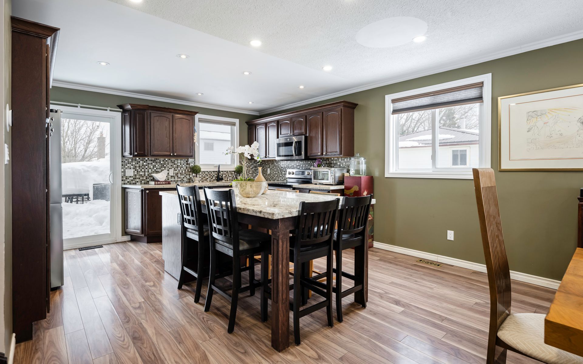 Pot lights in kitchen/dining room and a couple in the basement (2024)