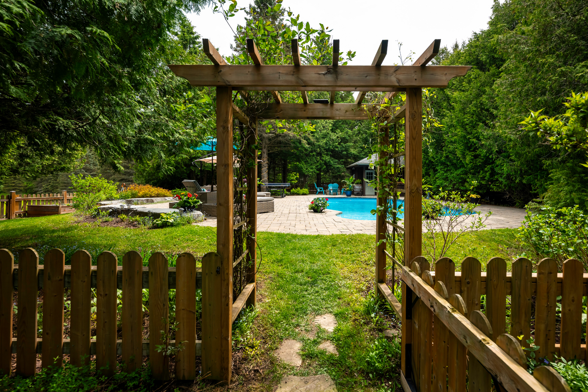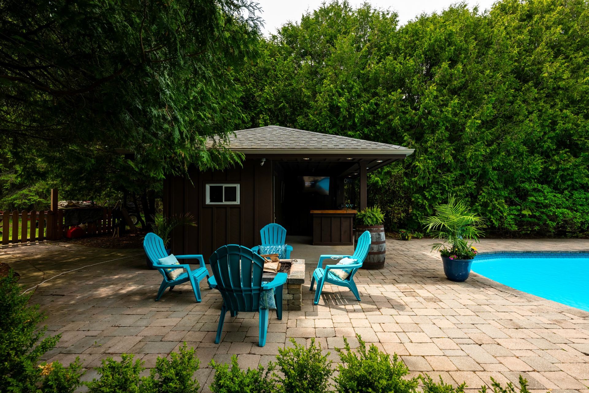 Pool cabana with screen (2023)